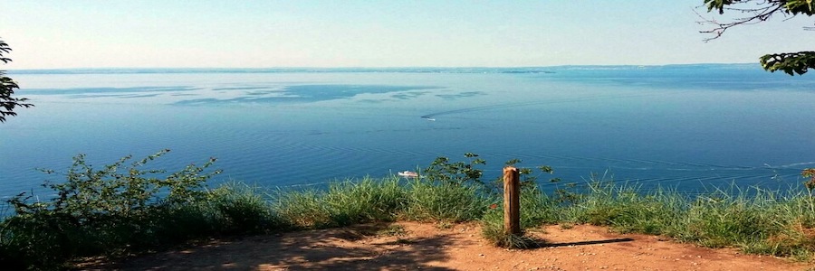 Dopo pochi minuti si giunge ad un bivio dove si può deviare a sinistra seguendo l’indicazione per la Madonna del Pign che dista pochi minuti. Il sentiero esce dal bosco e si apre uno splendido panorama sulla città di Garda e sul lago. La statua della Madonna Assunta venne eretta alla fine della seconda guerra mondiale a protezione del paese che fu risparmiato dai bombardamenti. Ritornando indietro, si prosegue verso la Rocca. Il sentiero continua nel bosco fino ad incrociare una strada asfaltata. Svoltando a destra si percorre un breve tratto fino a superare le ultime case e poi il sentiero sterrato ritorna a salire nel bosco. Si sale su velocemente fino a raggiungere la Sella della Rocca dove si incrociano diversi sentieri; a sinistra si può percorrere il semplice sentiero che conduce in circa 15 minuti all’Eremo dei Camaldolesi, costruito intorno al 1670; a destra si sale invece verso la sommità della Rocca. Seguendo per la Rocca, il sentiero in pietra costeggia il fianco roccioso del promontorio fino a spianare sulla sommità e giungere poi attraverso i prati al punto panoramico. Qui è possibile ammirare la splendida vista della città di Garda ed il suo caratteristico golfo da una altitudine di circa 300 metri. Si può proseguire lungo il sentiero e si raggiunge un nuovo punto panoramico che si affaccia sopra l’abitato di Bardolino e da qui si gode di una incredibile vista del lago di Garda con i suoi colori che in prossimità delle spiagge tendono al turchese. All’orizzonte possiamo intravedere Sirmione e sulla sponda opposta Salò. Una staccionata delimita in alcuni tratti la sponda del promontorio ma è bene prestare attenzione e non sporgersi troppo. Si può rientrare lungo lo stesso sentiero fatto all’andata oppure proseguire verso sud addentrandosi nel bosco e seguendo le tracce del sentiero battuto fino a ritornare alla Sella della Rocca. Arrivati alla sella possiamo rientrare verso la città di Garda seguendo il sentiero fatto all’andata oppure il sentiero subito alla sua destra; per entrambi un cartello indica direzione per Garda ma seguono due tratti diversi. La città si raggiunge in circa 30 minuti.
